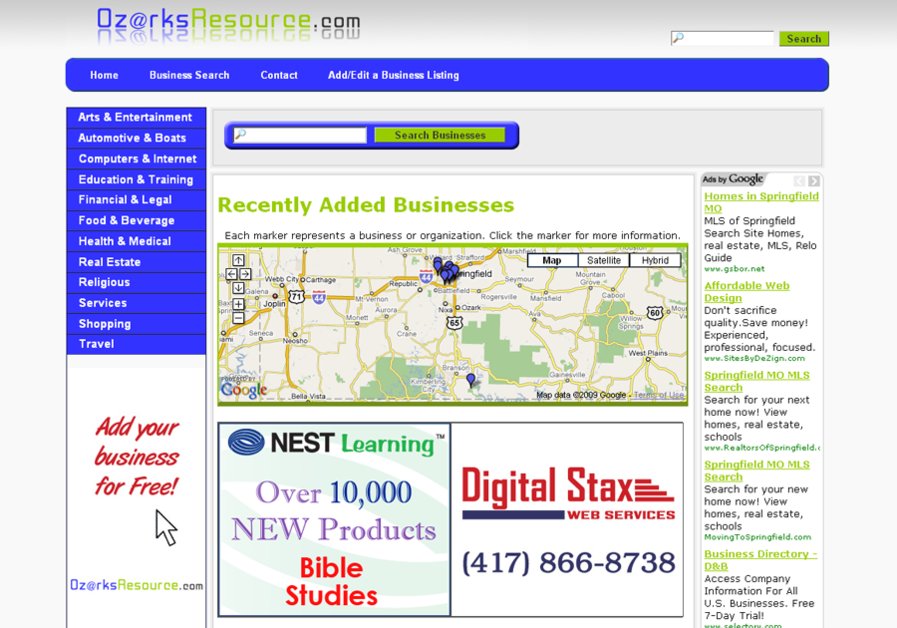 Ozarks Resource was created using Drupal. It is a business directory for the Missouri Ozarks.