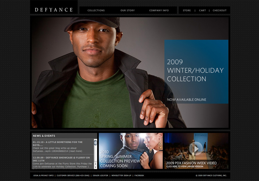 Defyance Clothing combines high-fashion aesthetics with high-tech fabrics. Created in partnership with Incubate Design and built on the open source Spree e-Commerce platform.