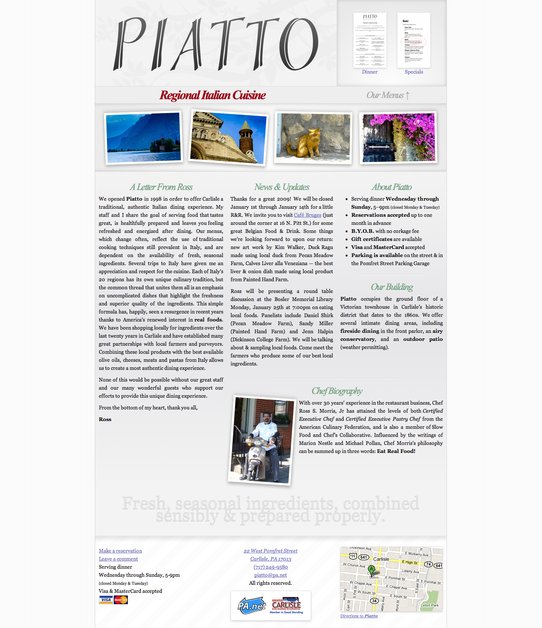 This is a screenshot from a recent redesign of piatto.com; the website for Piatto, a fine Italian restaurant in Carlisle, PA.