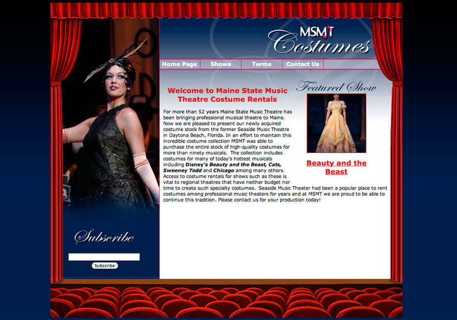 This is the homepage for a recent site we built for the Maine State Music Theatre to showcase their costume rental division.