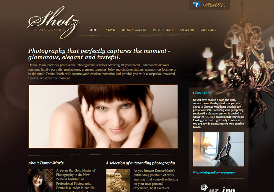This is a screenshot of the homepage of Shotz Photography www.shotz.co.nz