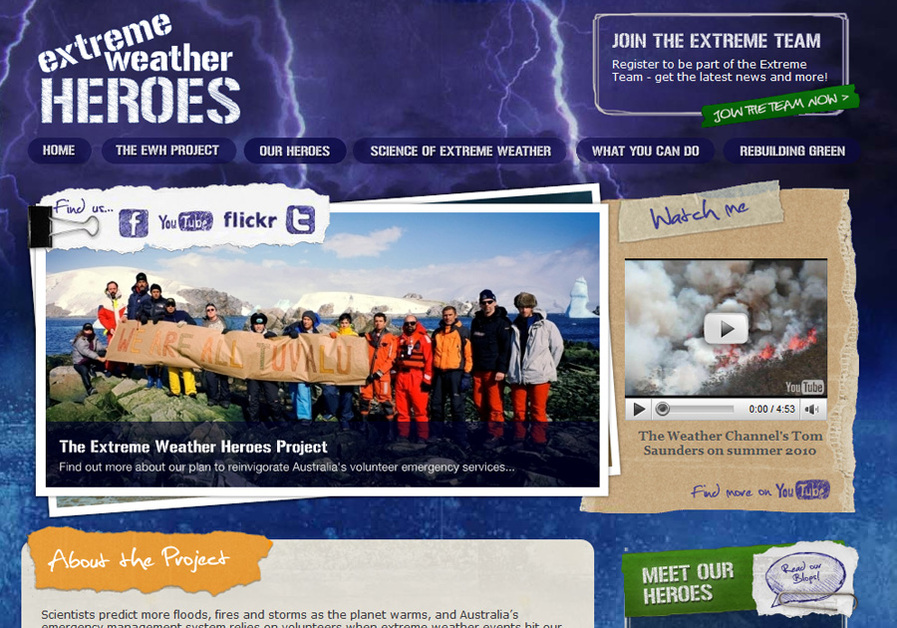 Zeroseven is an award-winning digital agency specialising in creative e-commerce CMS websites - A screenshot from the Extreme Weather Heroes project.