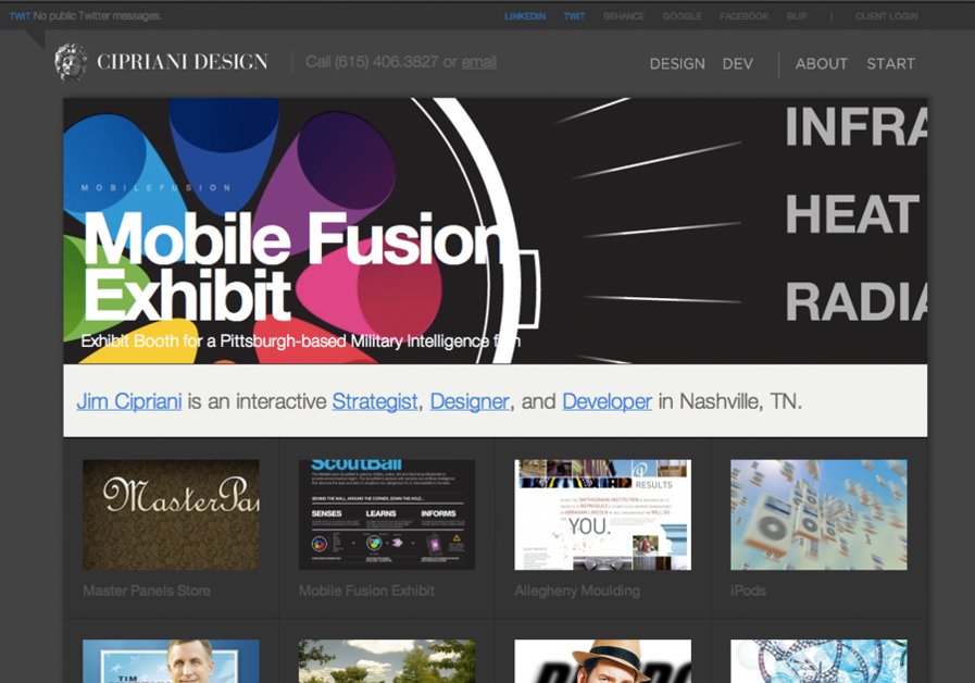 Jim Cipriani is an interactive Strategist, Designer, and Developer in Nashville, TN with 10+ experience serving client like Capitol Records, the World Bank, Vanderbilt University, Rockefeller Center, and other brands in the advertising, entertainment, education, and retail industries.