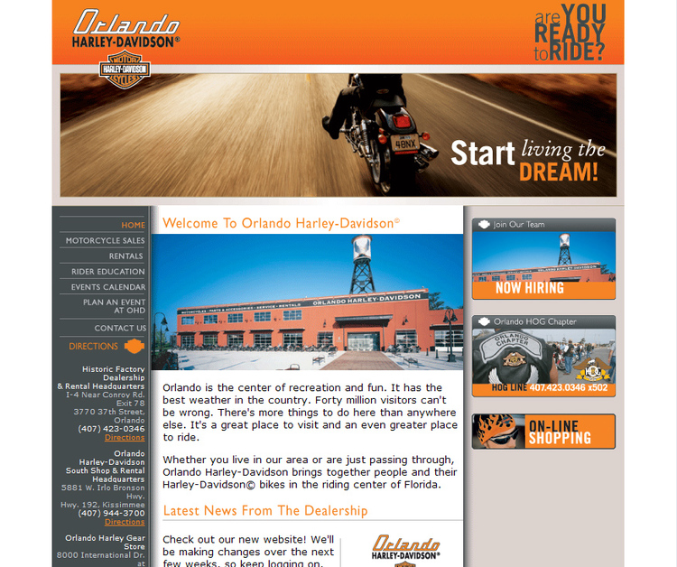 This is a photo of the Orlando Harley website which we developed in XHTML/CSS and PHP in 2006.