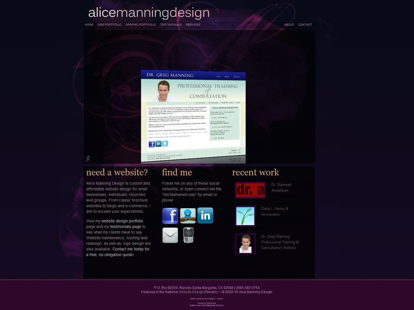 Alice Manning Design is custom and affordable website design for small businesses, individuals, churches and groups. From classic brochure websites to blogs and e-commerce, I aim to exceed your expectations.
