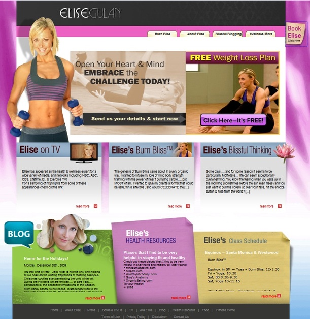 This is a screenshot of a WordPress based platform made for Elise Gulan, a celebrity trainer and fitness instructor in California.