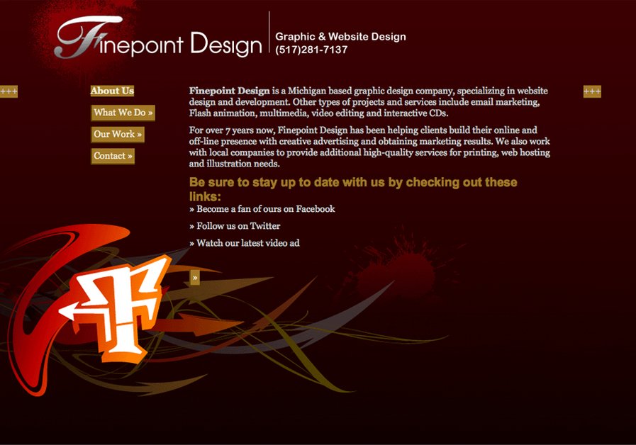 Finepoint Design is a Michigan based graphic design company, specializing in website design and development. Other types of projects and services include email marketing, Flash animation, multimedia, video editing and interactive CDs.