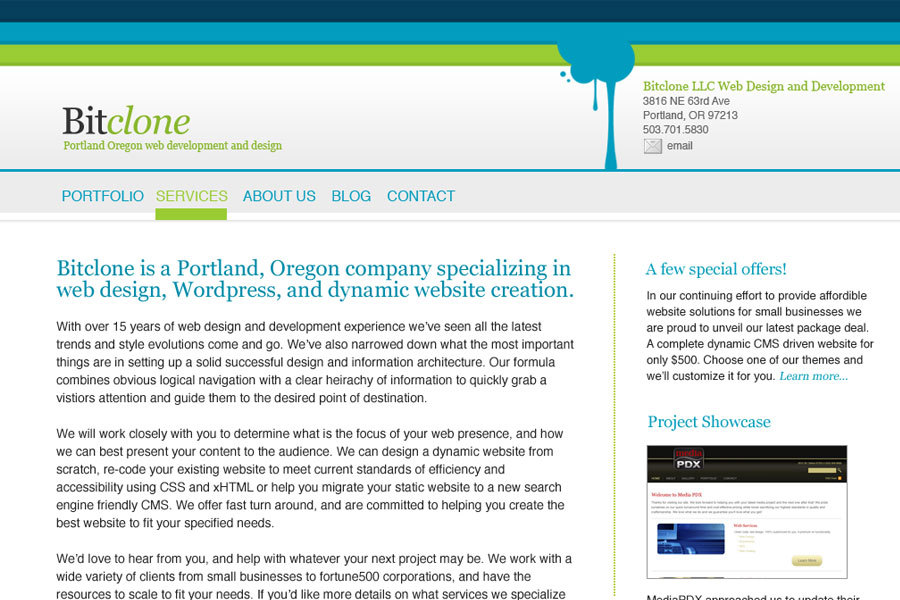We are a small design development agency based in Portland, Oregon specializing in Wordpress customization, and logical xHTML/css flavored website solutions. Please visit us for more detailed info, we'd love to work with you.