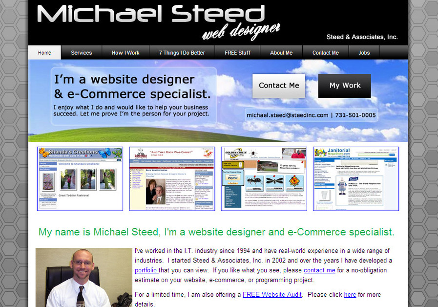 My name is Michael Steed, and I do website and e-commerce design in the Jackson, Tennessee and the surrounding tri-state area. Please contact me for a no-obligation estimate on your website, e-commerce, or programming project.