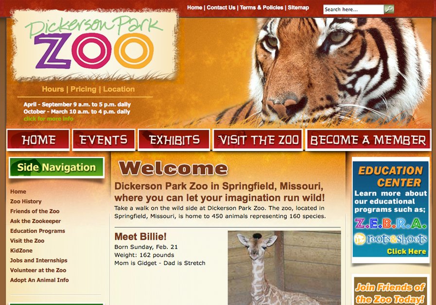 Take a walk on the wild side at Springfield, Missouri's Dickerson Park Zoo. http://dickersonparkzoo.org. The new site quickly sold more memberships in a month then they had all year on their old site, and starting selling online products--a first for them.