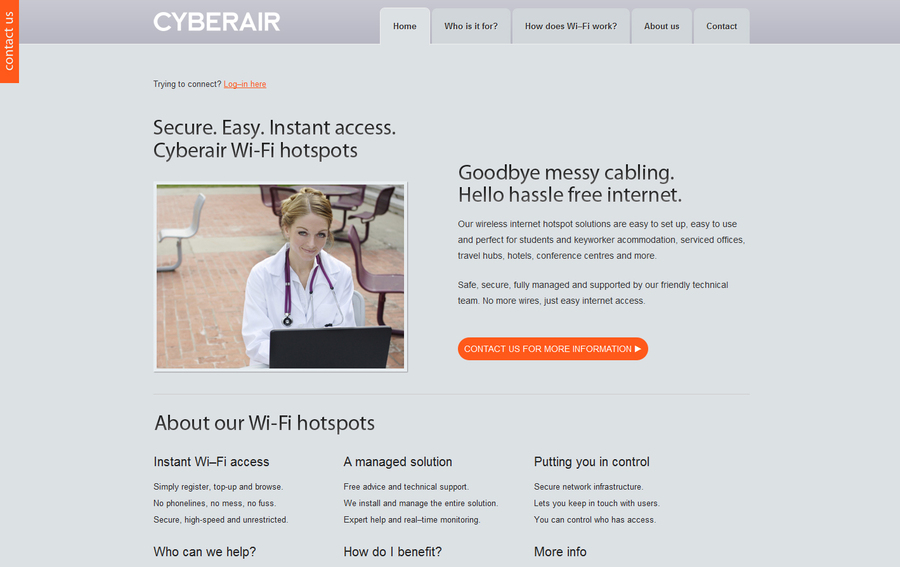 This is a screenshot of the homepage of Cyberair, our wireless internet network service, which we recently designed.