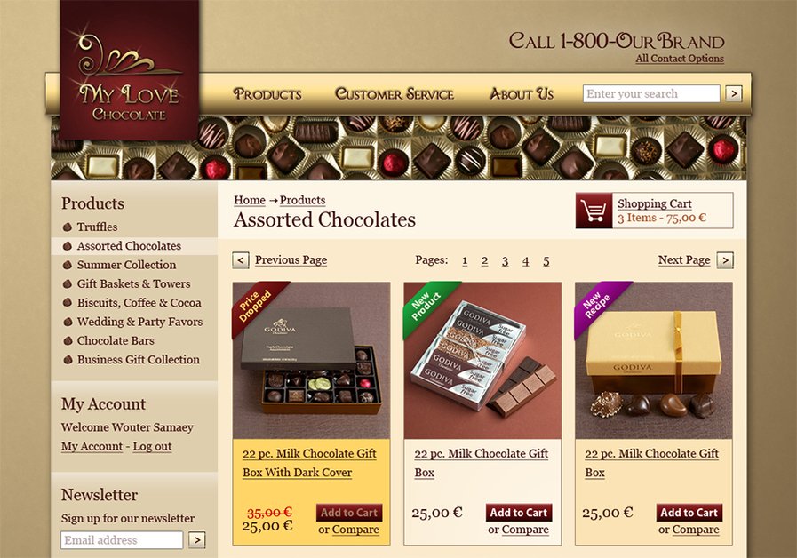 This is a webdesign mockup of an online chocolate shop.