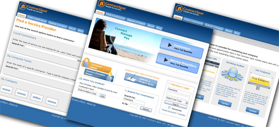 Sample of pages from ContractSpot.com; a site that connected service pros to potential customers.
