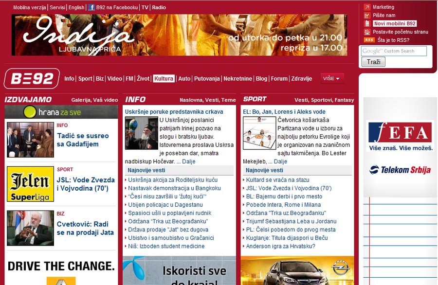 This is a screenshot of B92.net, the most visited site in Serbia.