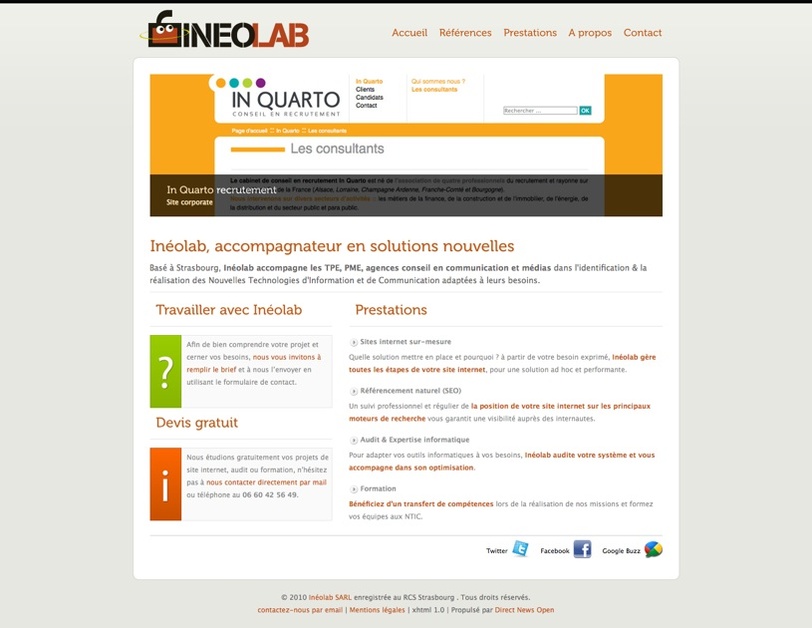 Basé à Strasbourg (France), Inéolab accompagne les TPE, PME, agences conseil en communication et médias dans l'identification & la réalisation des Nouvelles Technologies d'Information et de Communication adaptées à leurs besoins.