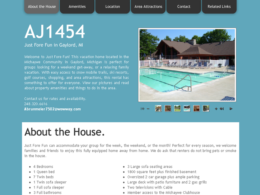 Screenshot of our recent redesign for AJ1454.com, a rental property in northern Michigan.