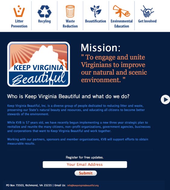 This is a screenshot of keepvirginiabeautiful.org, we designed and created the website for this non-profit organization.