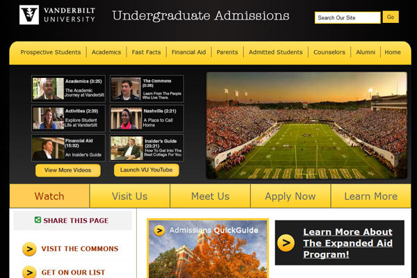 This is a screenshot from the latest homepage redesign of the Office of Undergraduate Admissions at Vanderbilt University