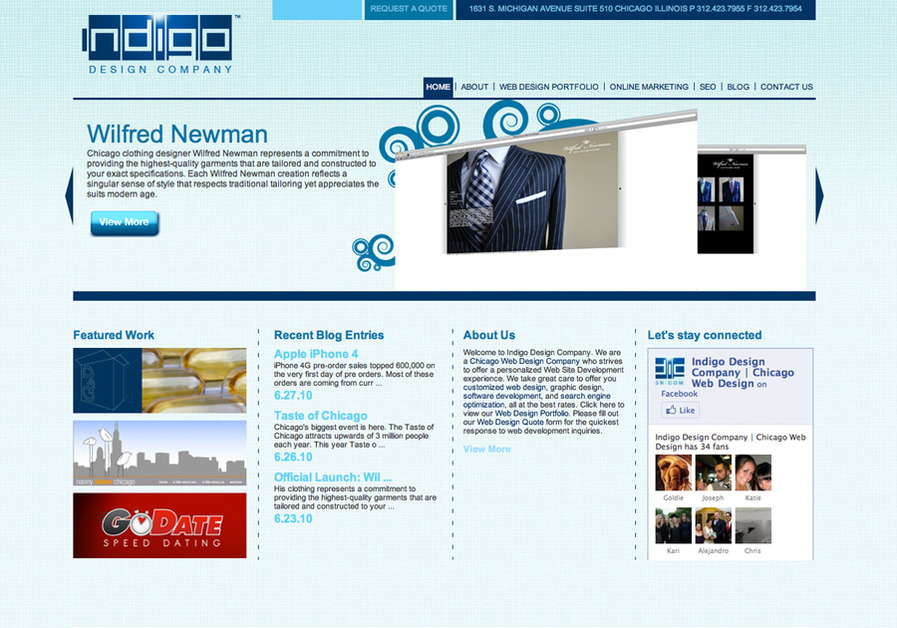 We are a Chicago web design company who strives to offer a personalized web site development experience. We take great care to offer you customized web design, graphic design, software development, and search engine optimization, all at the best rates. Our initial website consultation is complimentary and will lead to a proposal for your desired web presence. Please fill out our web design quote form for the quickest response to web development inquiries. This will help you identify what functionality you need for your new website and how to best get there. We will provide you with the most cost effective website solutions that you can find in the Chicago area. We will also partner with you to the level of support you desire and will not lock you into support contracts, but are capable of providing such ongoing services.