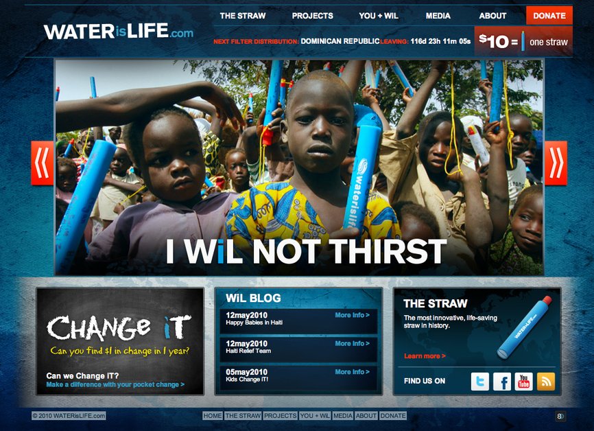 A screenshot of the new brand and interactive redesign WATERisLIFE.com.