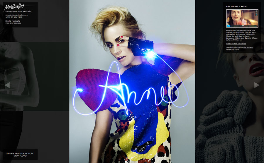 A modern portfolio for a Finnish fashion photographer. Site (including fully custom JQuery-based Javascript and image metadata based "CMS") built in 5 hours! -> http://www.ninamerikallio.com