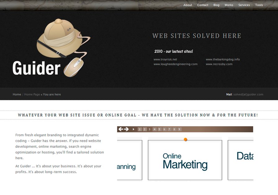 From fresh elegant branding to integrated dynamic coding - Guider has the answer. If you need website development, online marketing, search engine optimization or hosting, you'll find a tailored solution here.