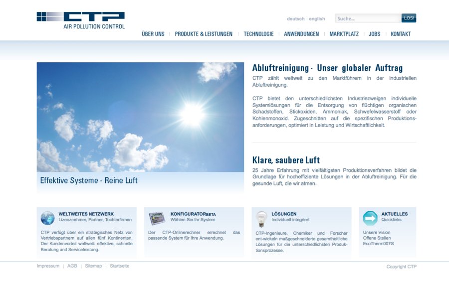 This is a screenshot of the redesign we did for CTP, one of the world leader's in industrial air pollution control.