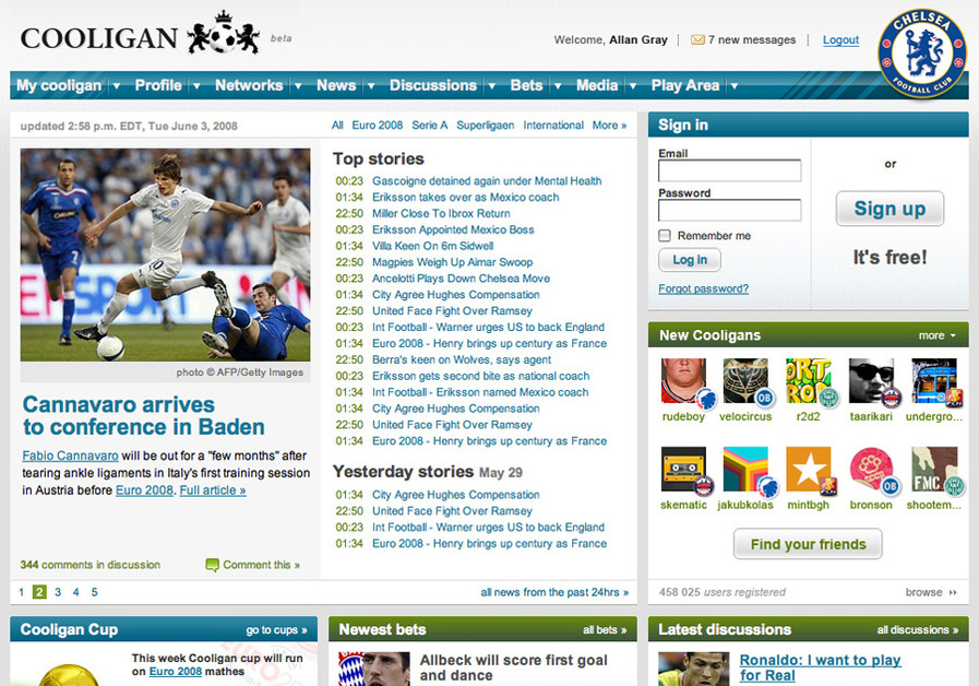 Fresh news, game scores and ratings, live videos, bets, fan-clubs and closed lodges, personal blogs and discussions.
