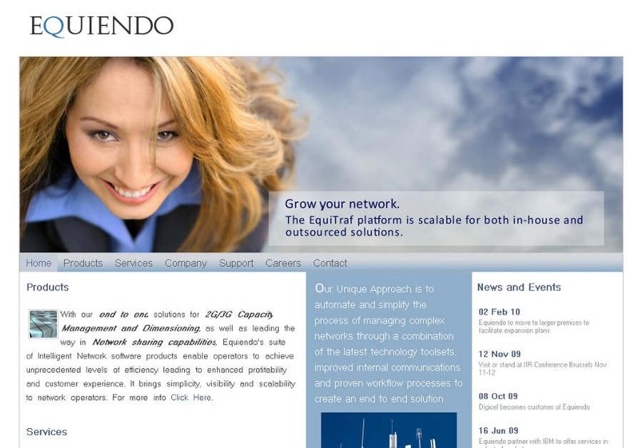 This is a screenshot of the website that was designed and built for Irish telecomunications firm, Equiendo.