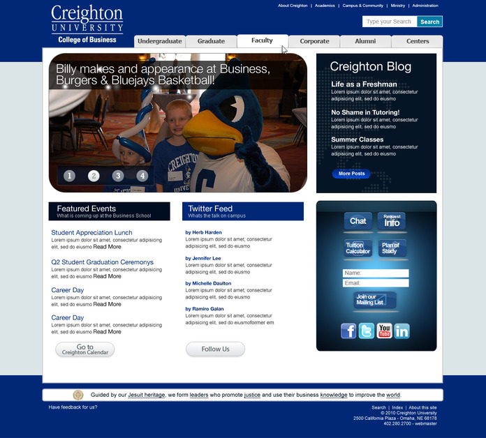 This is a screenshot of a project we are currently working on for Creighton University here in Omaha to redesign the College of Business website as well as develop a few custom web applications.