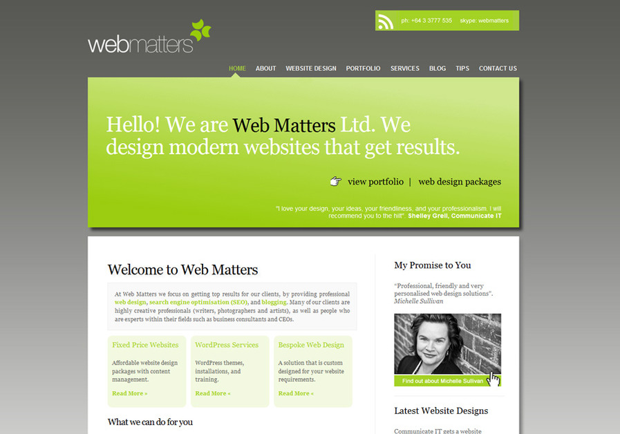 At Web Matters we focus on getting top results for our clients, by providing professional web design, search engine optimisation (SEO), and blogging. Many of our clients are highly creative professionals (writers, photographers and artists), as well as people who are experts within their fields such as business consultants and CEOs.