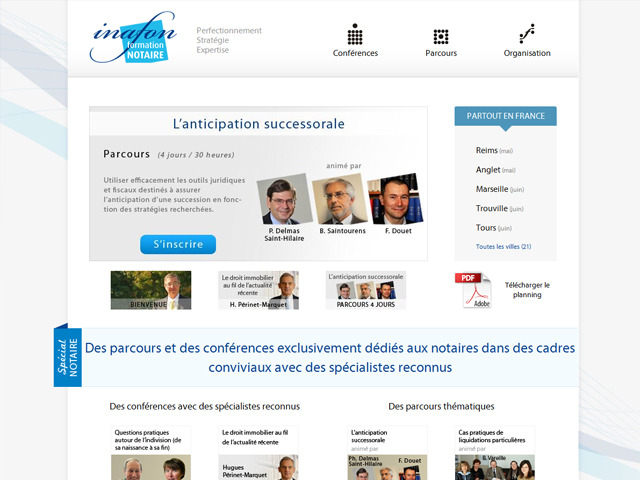 Lʼinstitut notarial de formation des notaires a souhaité mettre en oeuvre un site Internet proposant de nouvelles offres de formation à destination des notaires exclusivement.