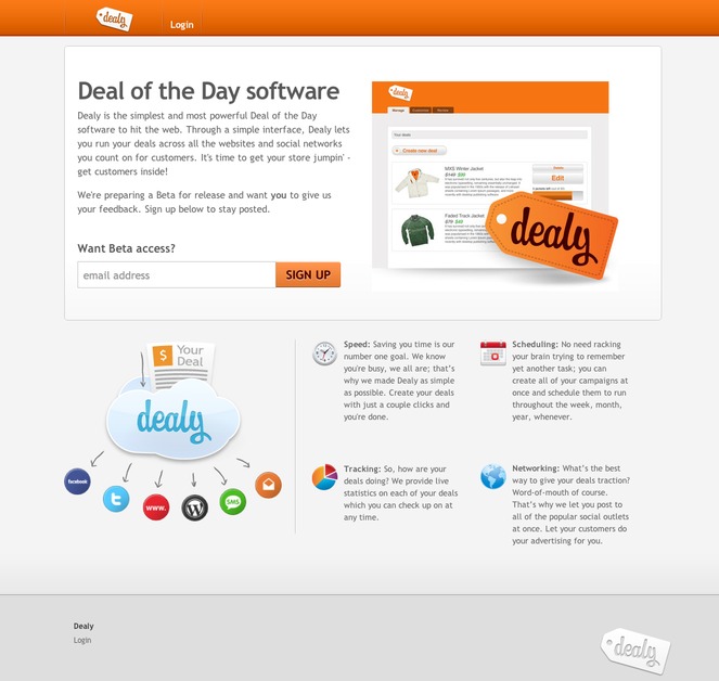 Dealy lets you promote your deal of the day. Whether you're an e-commerce site or brick and mortar you can get repeat customers by running your own deal of the day.