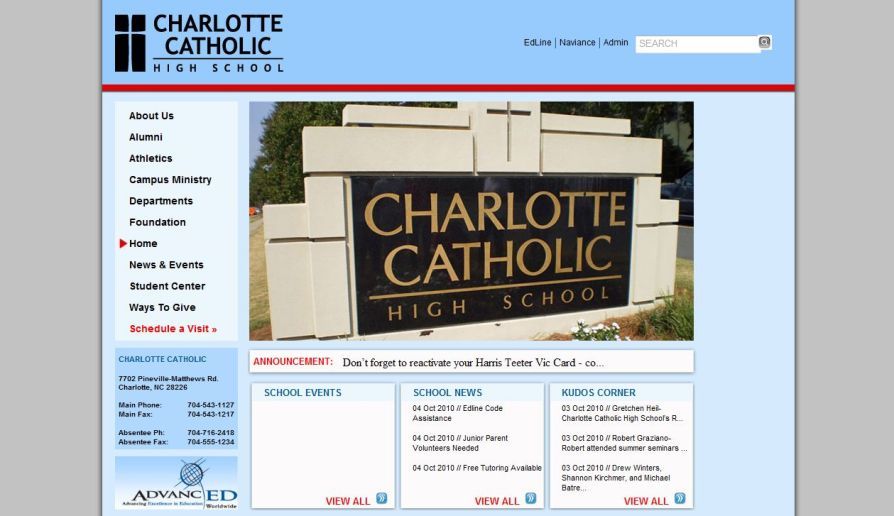 Charlotte Catholic High School needed to consolidate 5 websites into 1. This project was developed using, Java, XHTML, CSS and ASP.NET custom CMS modules.