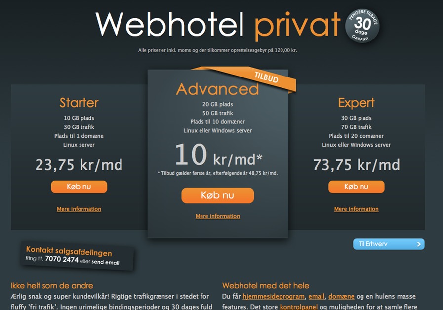 Screenshot from surftown.dk. A Drupal site for a Danish webhost.